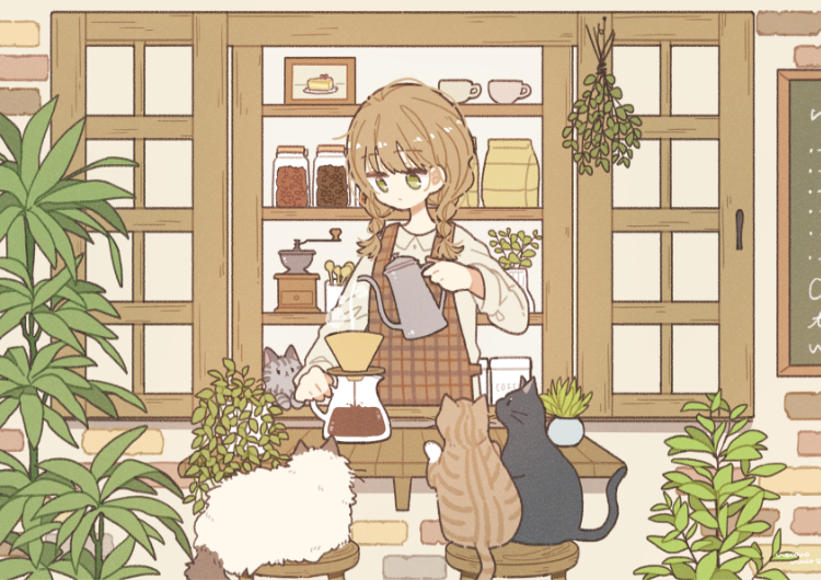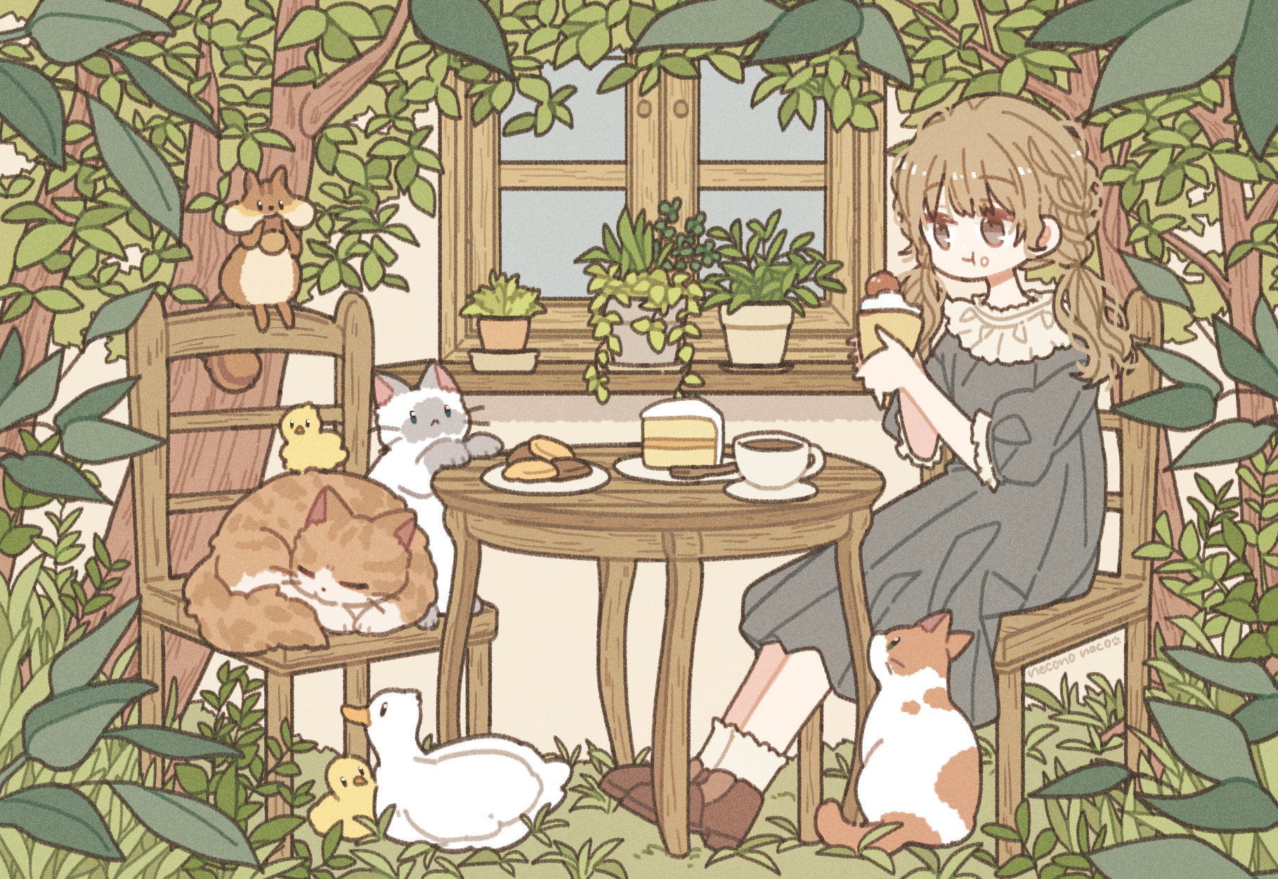 猫をはじめとした動物たち、カフェ雑貨やスイーツ、ヨーロッパをイメージした